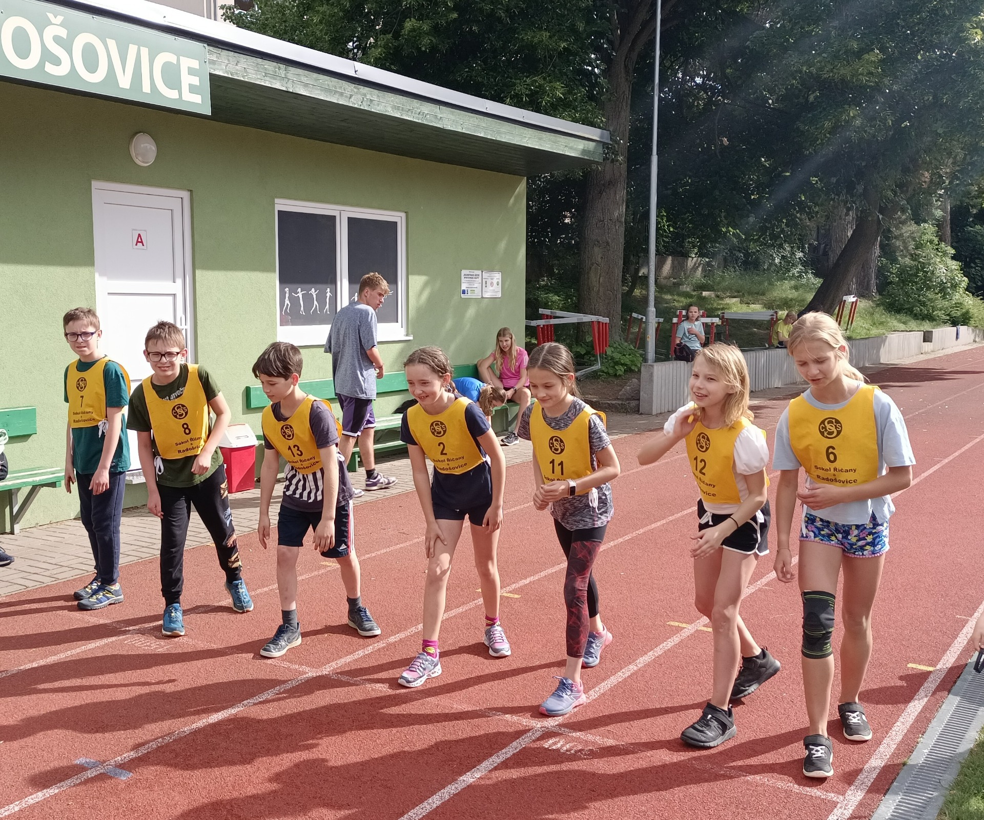 V květnu, červnu a září trénujeme na sokolském hřišti atletické disciplíny: skoky, hody a běhy. Děti si na sobě vyzkouší, jak důležité je umět rozložit síly během závodu. Prožijí si pocit radosti z výhry, ale učí se přijmout i prohru.